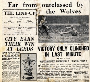Here is an extract from the South Wales Evening Post of January 5th, 1957, when the Swans went down fighting at Molineux, to lose eventually 5 – 3 in the 3rd round. To make matters worse, C*****f beat Leeds away on the same afternoon!