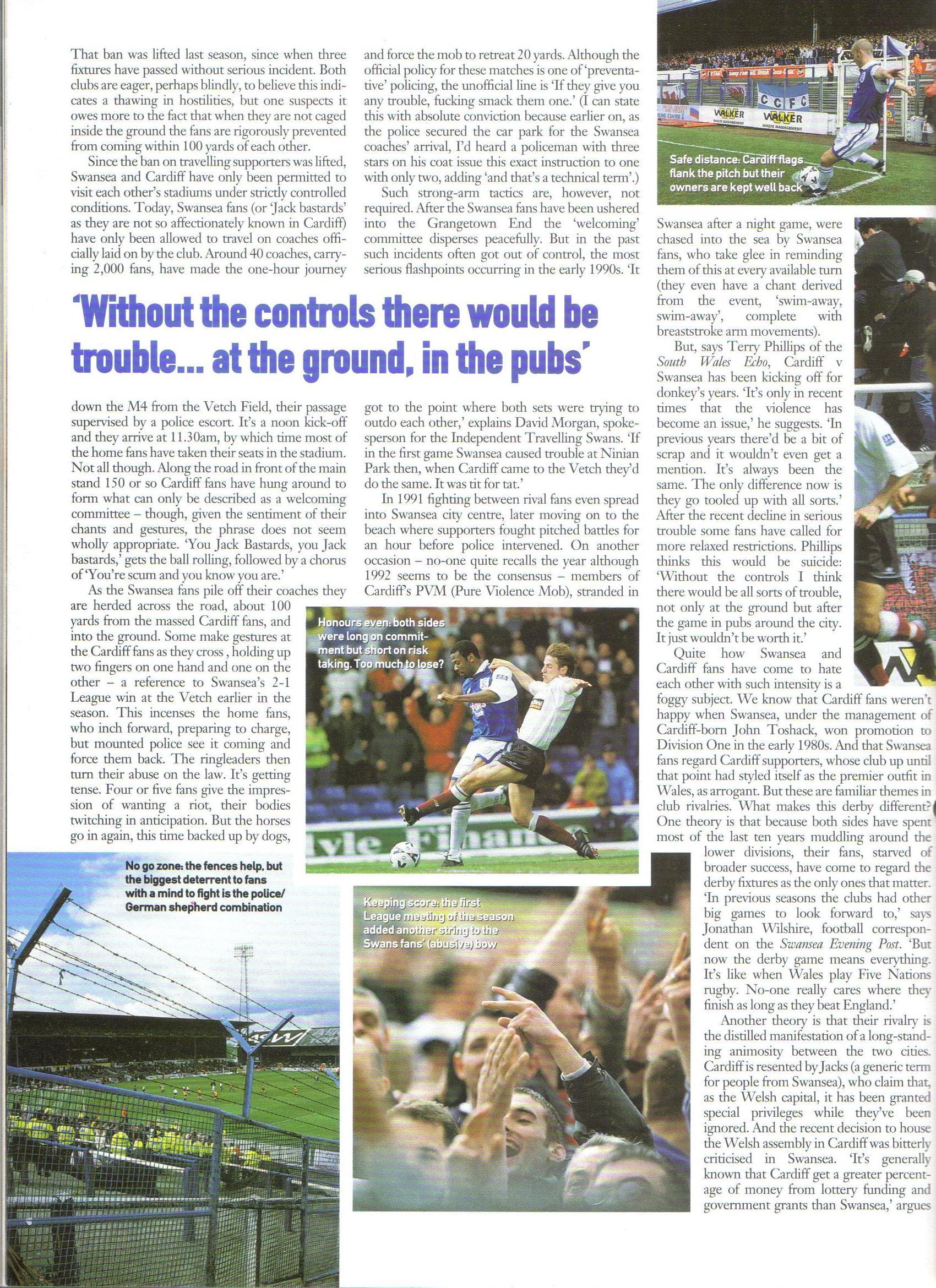 Remember when Tate and Trundle for ‘anti-Cardiff’ behaviour in 2006? That prompted this article about the Cardiff-Swansea rivalry in When Saturday Comes.