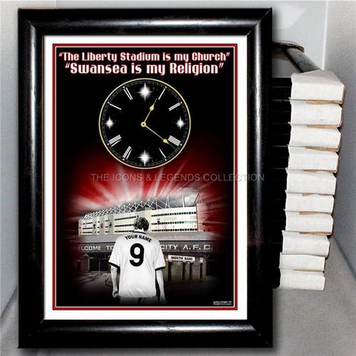 Personalized clock in a frame: “The Liberty stadium is my church. Swansea is my religion”