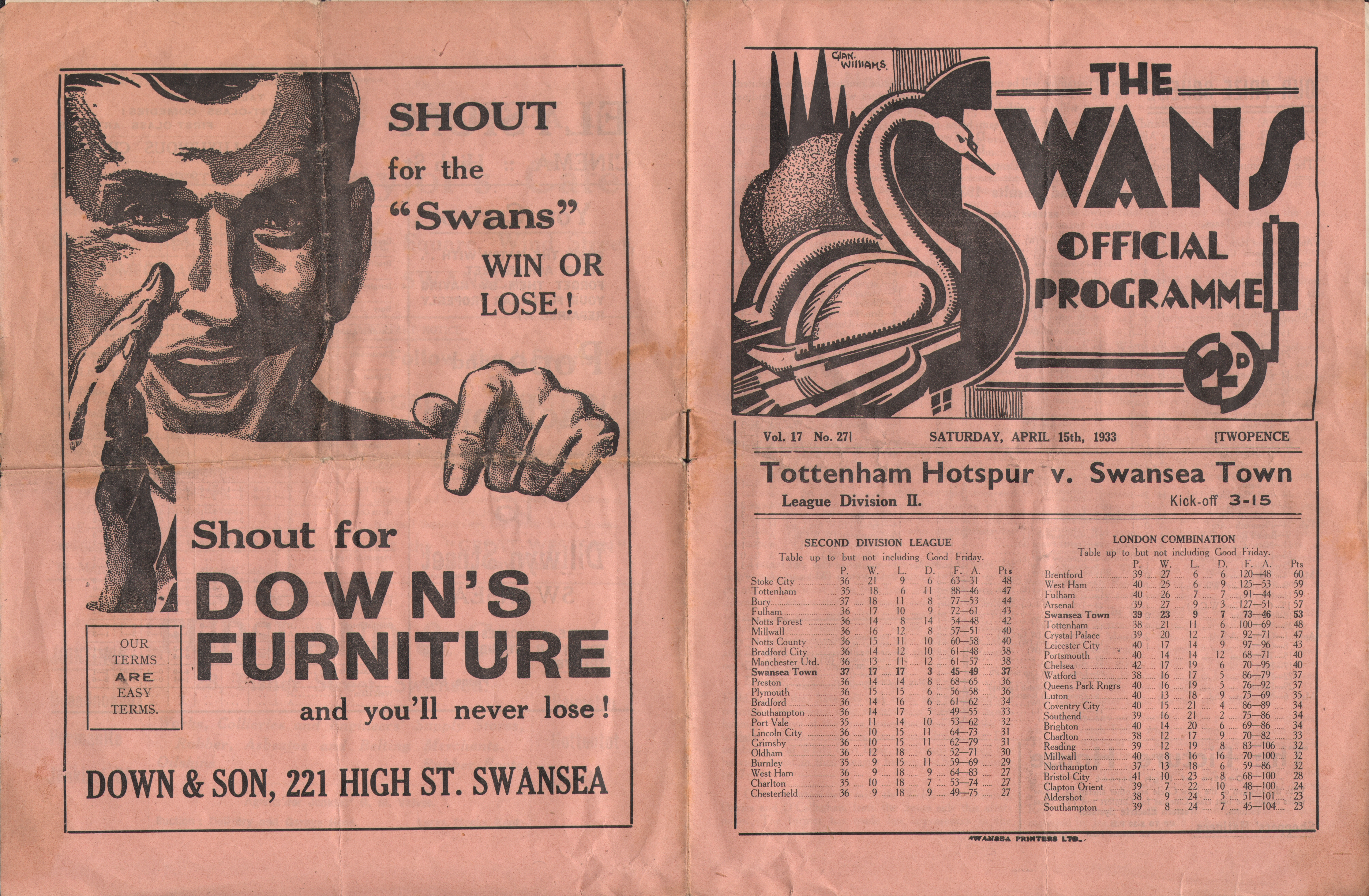 Swansea Town v Tottenham Hotspur, 15 April 1933