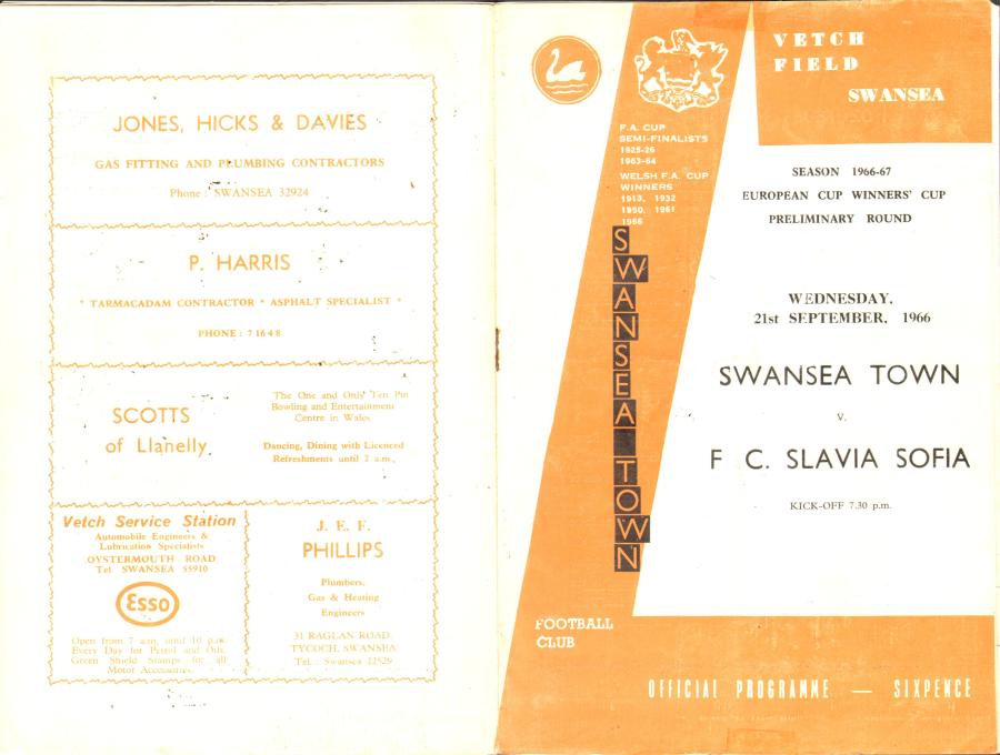 Home v Slavia Sofia 21st September 1966 (European Cup Winners Cup)