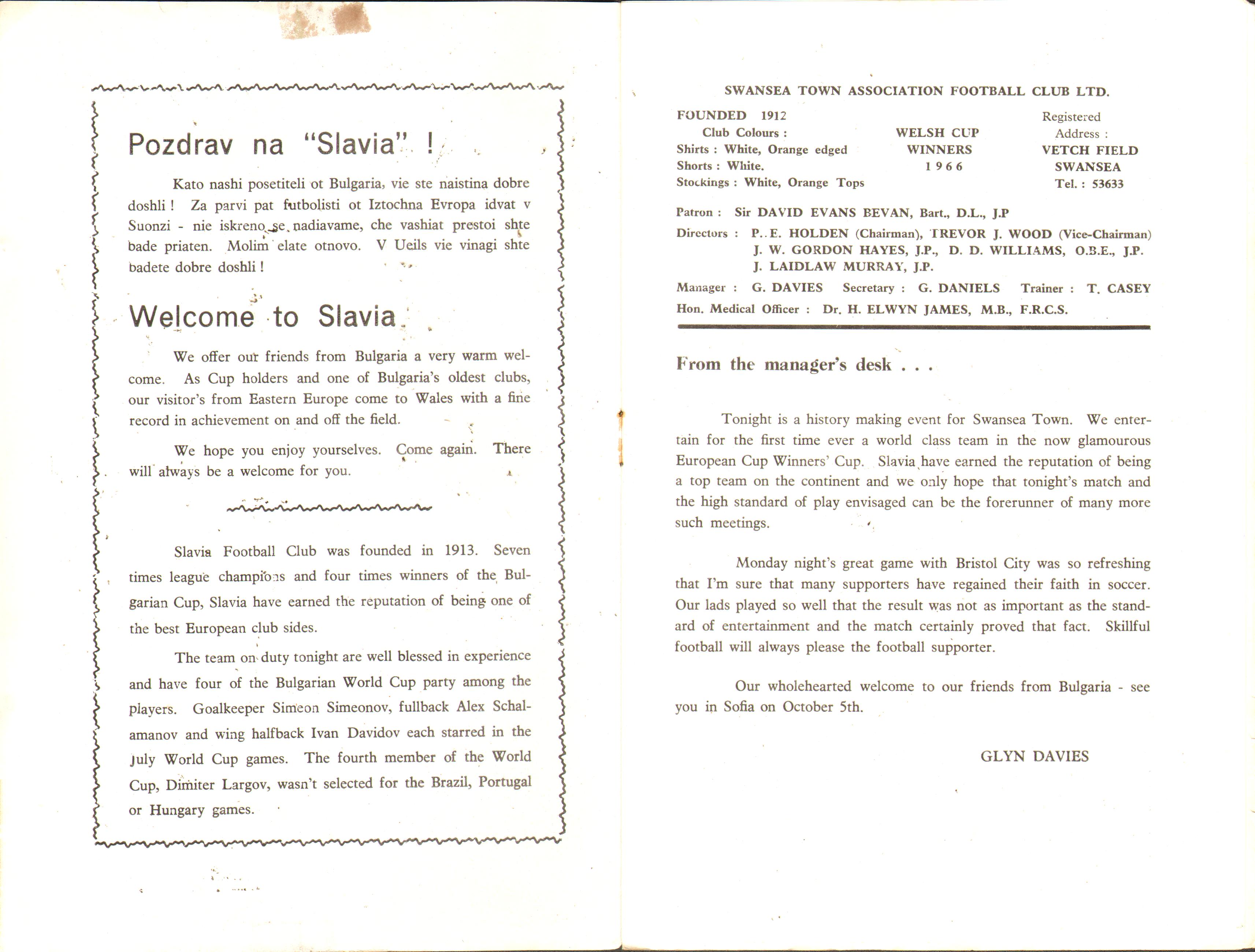 Home v Slavia Sofia 21st September 1966 (European Cup Winners Cup)