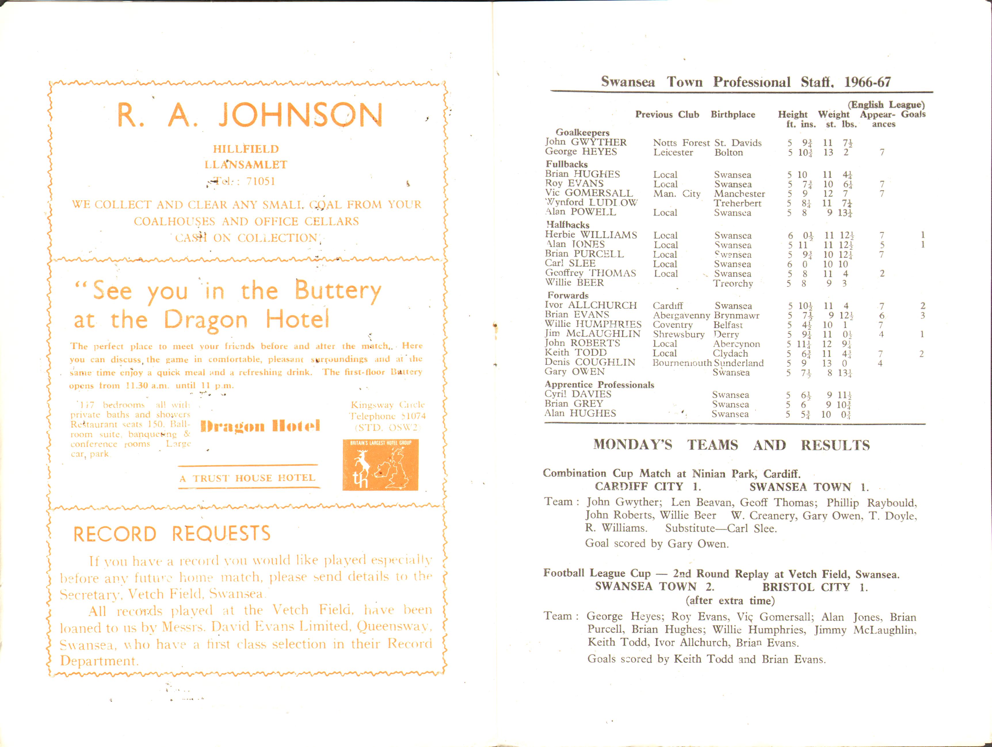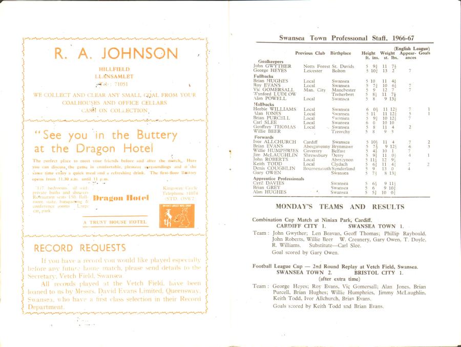 Home v Slavia Sofia 21st September 1966 (European Cup Winners Cup)