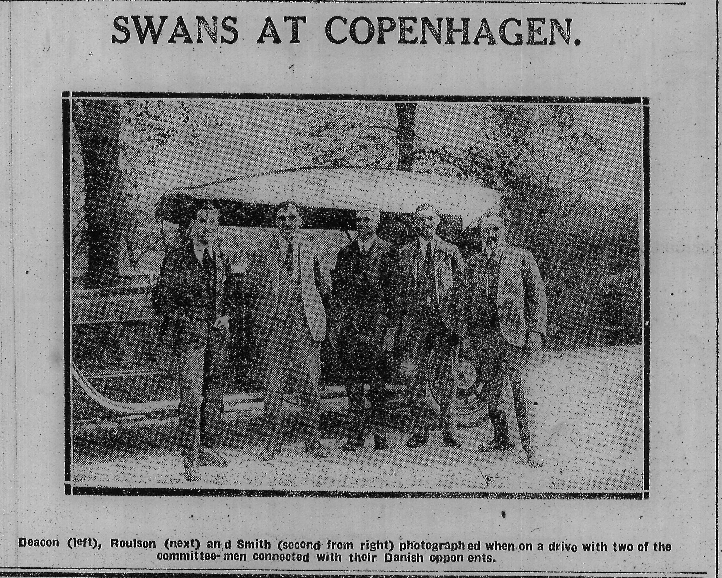 In his first message to the “Daily Post”, Mr. Joe Bradshaw stated that the Swans’ last match of the series, played on Wednesday, would be the stiffest, as their opponents would be composed of the pick of the five leading clubs of Copenhagen.