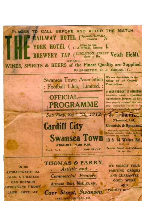 Not everything was ready in time and players had to perform on a rolled-clinker pitch for the first season, making knee-pads essential. 2,000 people turned out to watch Swansea Town’s first practice match while 8,000 were at the club’s first Southern League match. Over the course of the first season, crowds were generally twice the size of those of Swansea RFC.