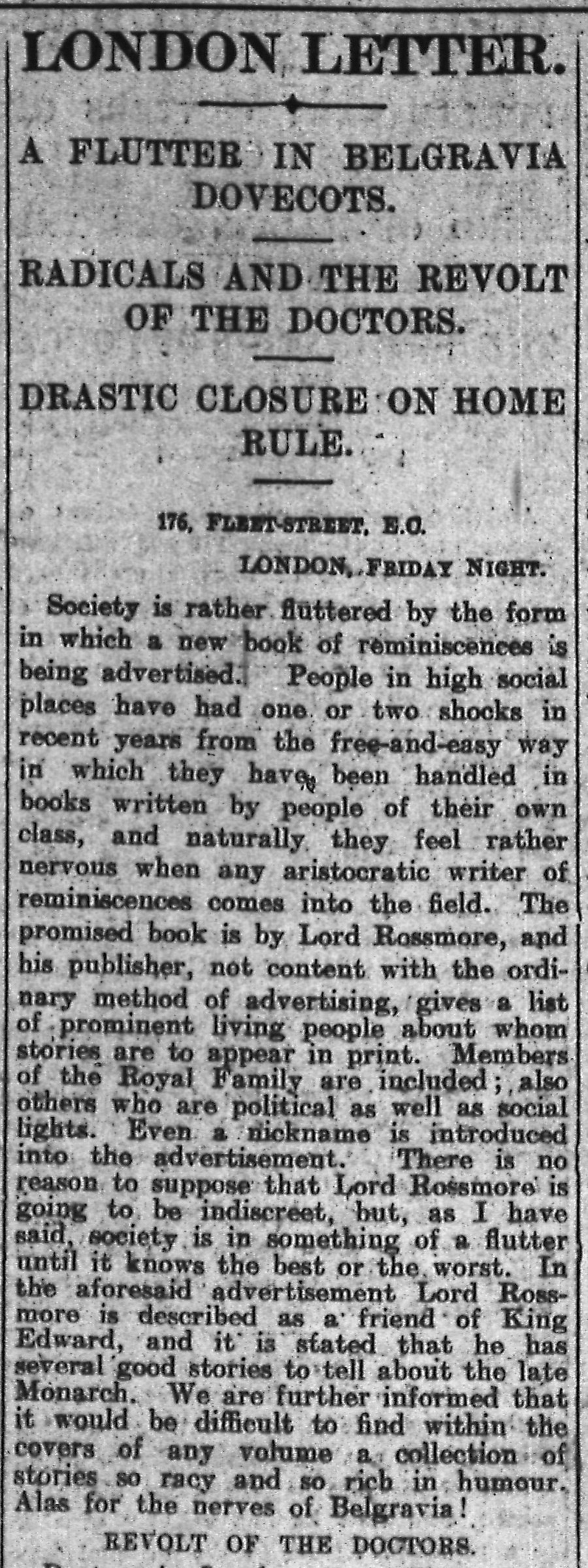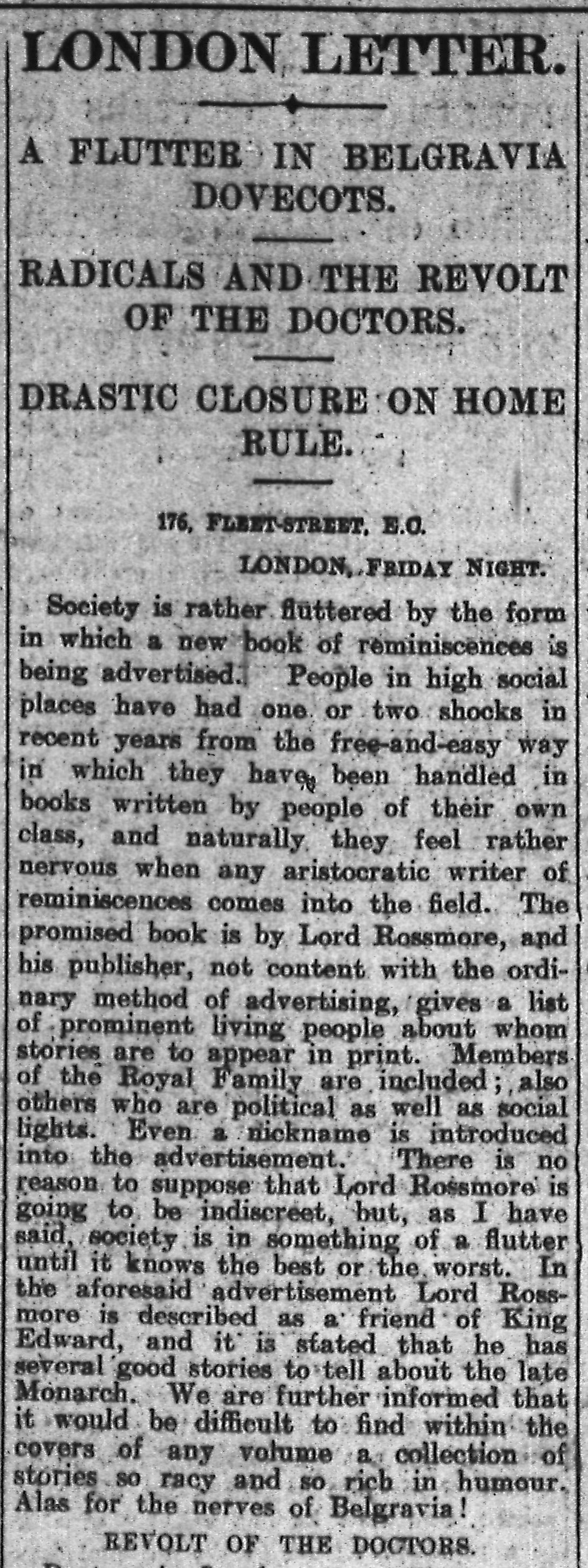 Western Mail 7th Sept 1912 – London Letter