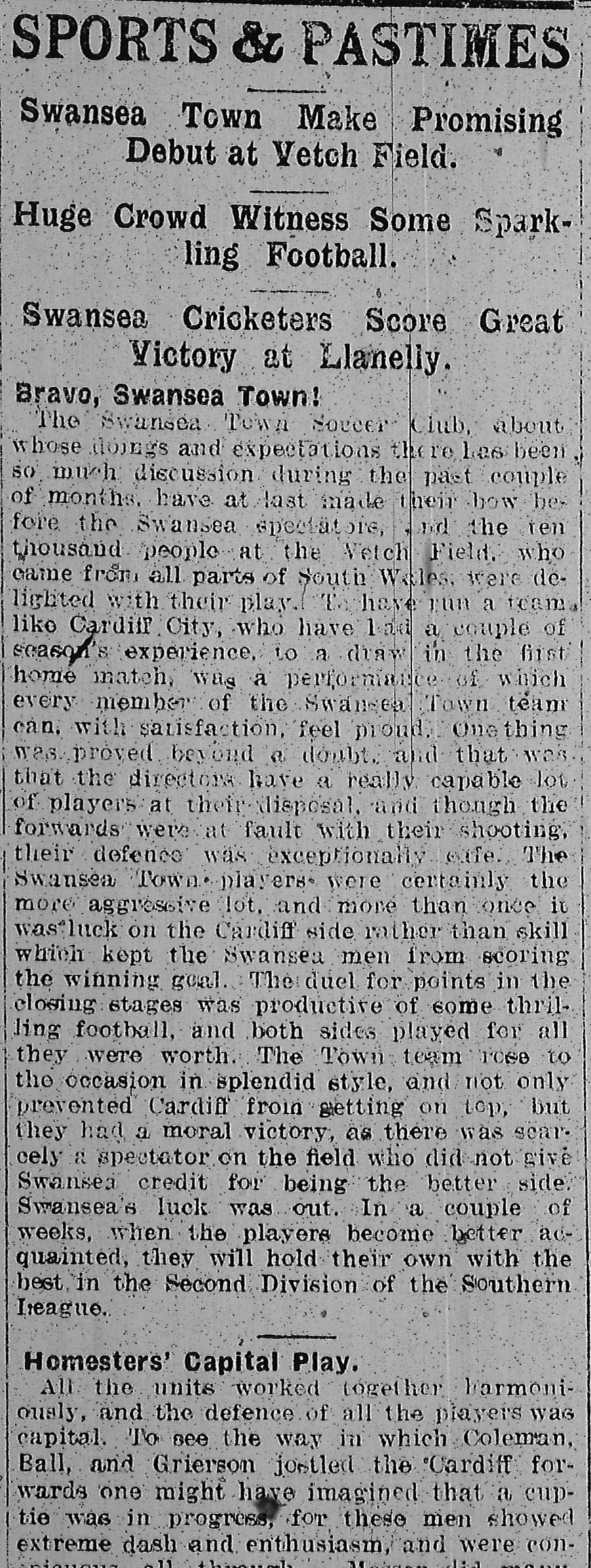 9.9.1912 SWDP Swansea T v Cardiff C Match Report 1 edit