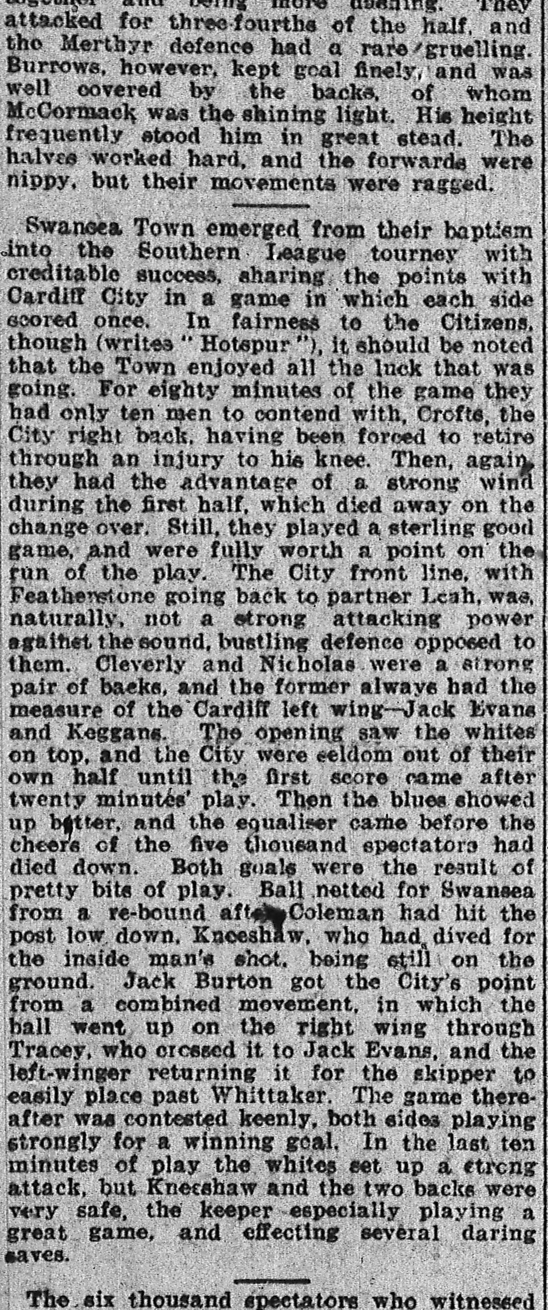 9.9.1912 WM Swansea T v Cardiff City Match Report edit