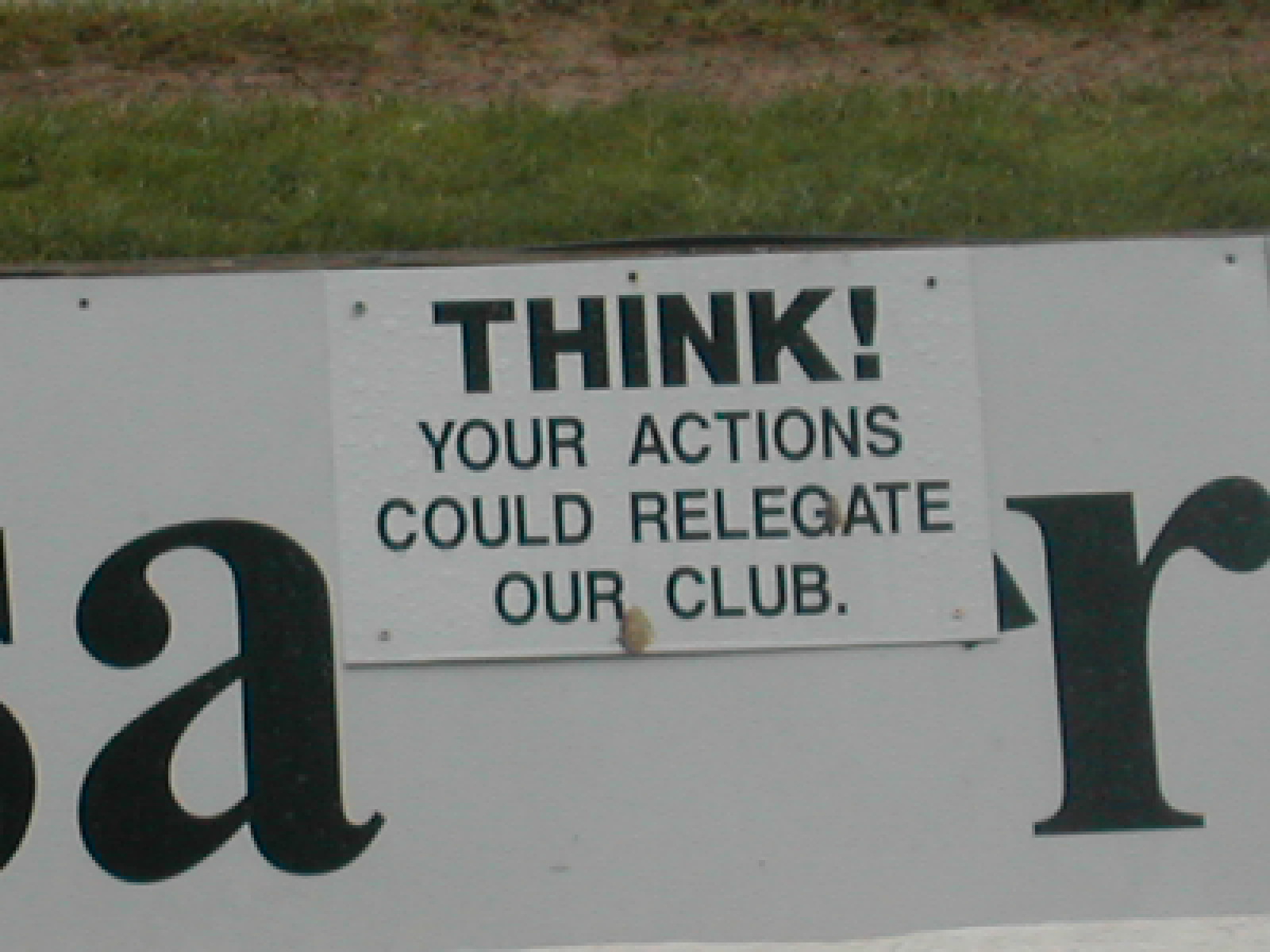 Worried about a points deduction if there was crowd trouble, the club had this sign erected on the North Bank. Some fans thought it should be facing the pitch.
