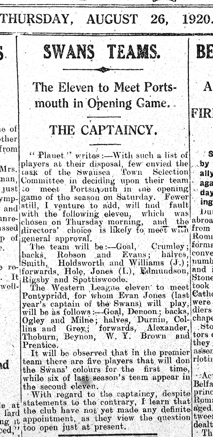 26.8.1920 Portsmouth Teams