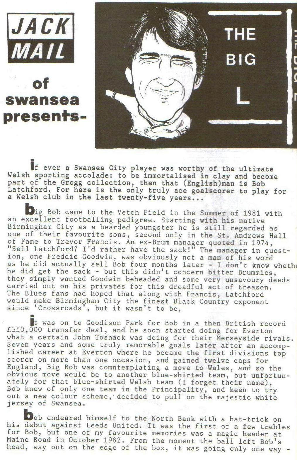 And here’s another article from Jack Mail (June 1991) calling him Swansea’s last superstar.