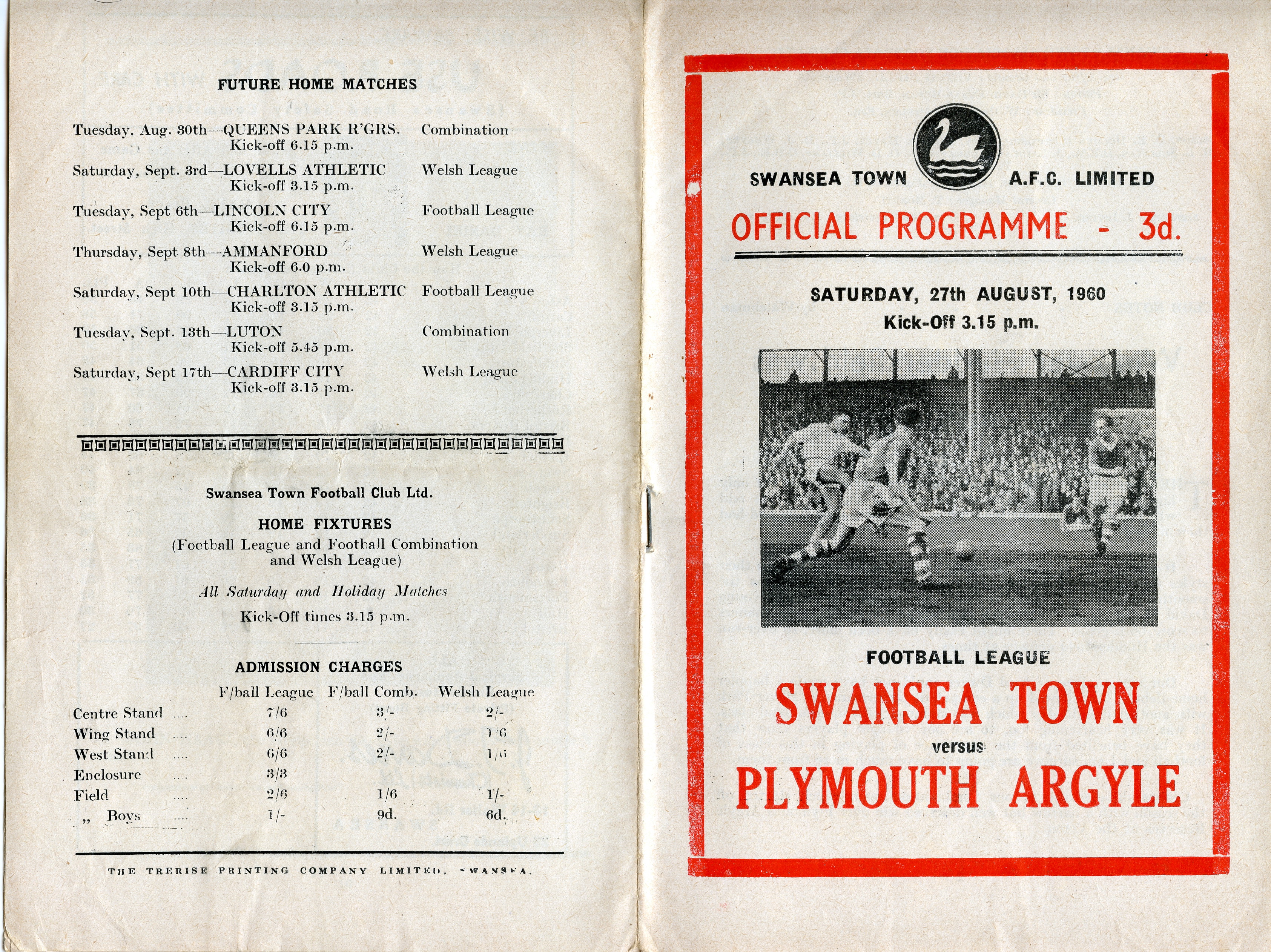 Swansea Town vs Plymouth Argyle, 1960.